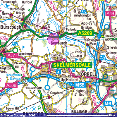 Newburgh lies on the A5209 and may be reached from Junction 27 of the M6 (signs to Parbold) and from the A59 Ormskirk to Preston road at Burscough.