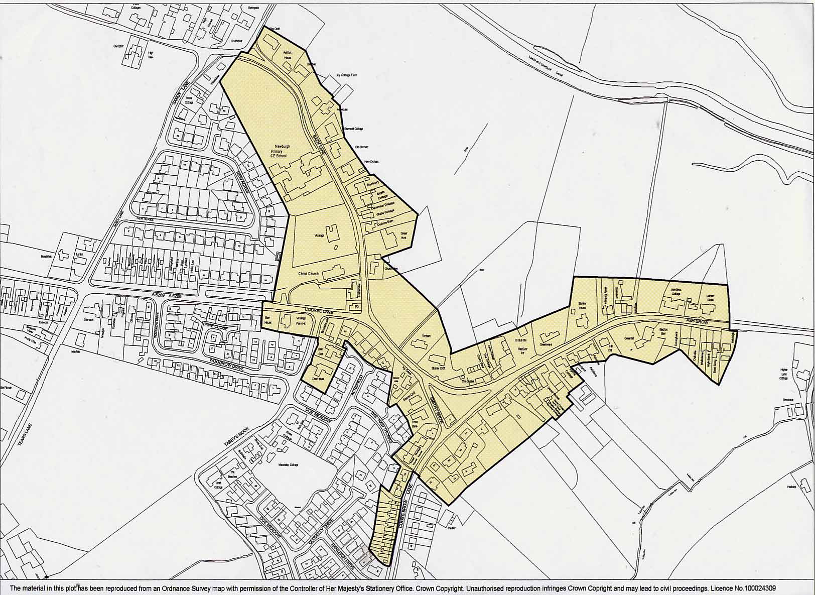 Christ Church and Newburgh Church of England School, at the north end of the Conservation Area, are set within the largest open space. The Green is the only other public open space. It is on the side of the ridge on which the village sits, close to the highest point.